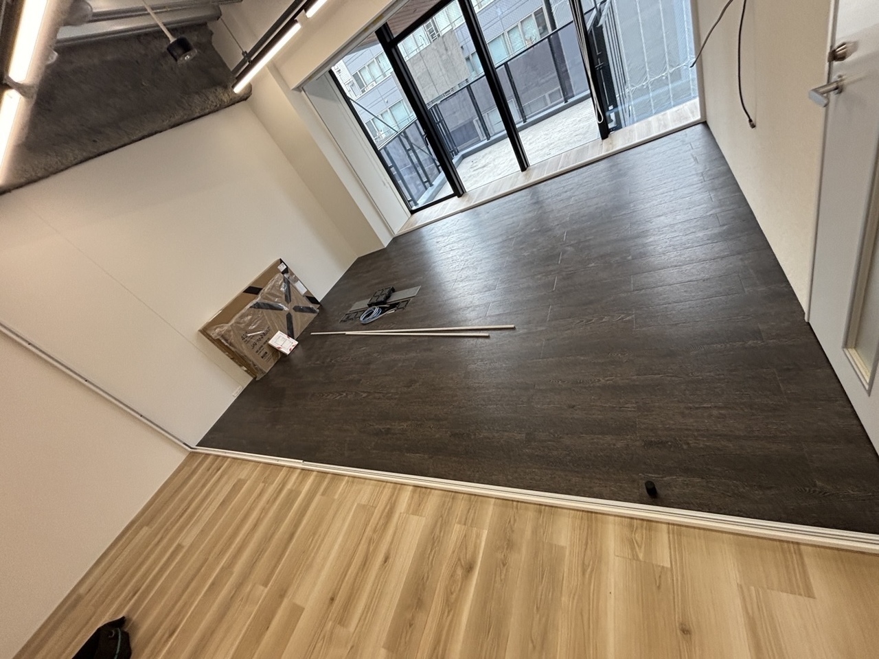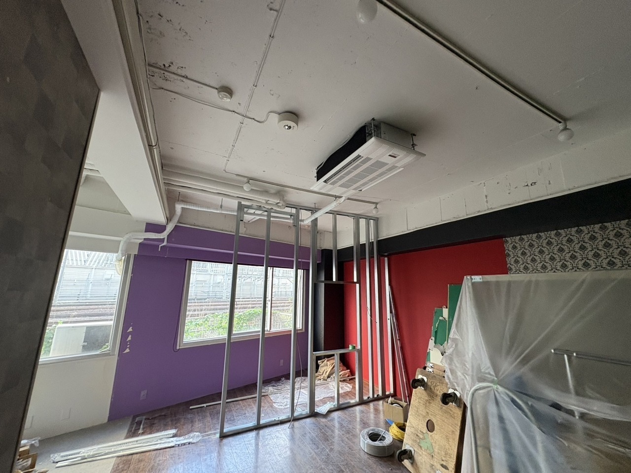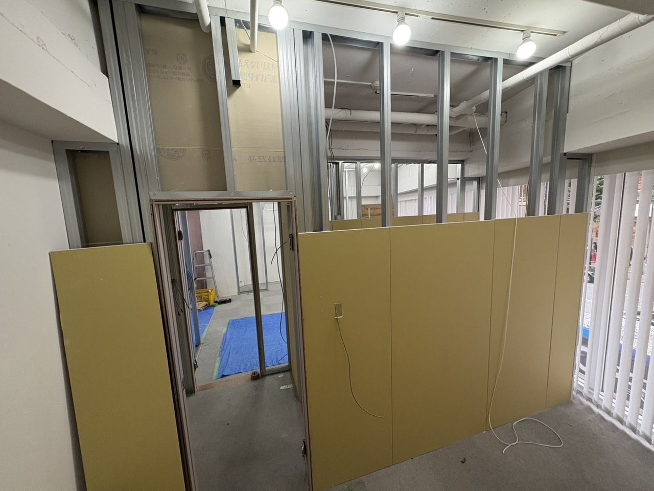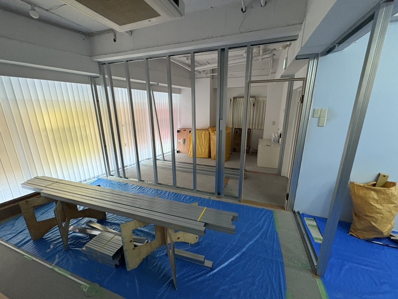 今回は間仕切工事と床の工事を行いました。