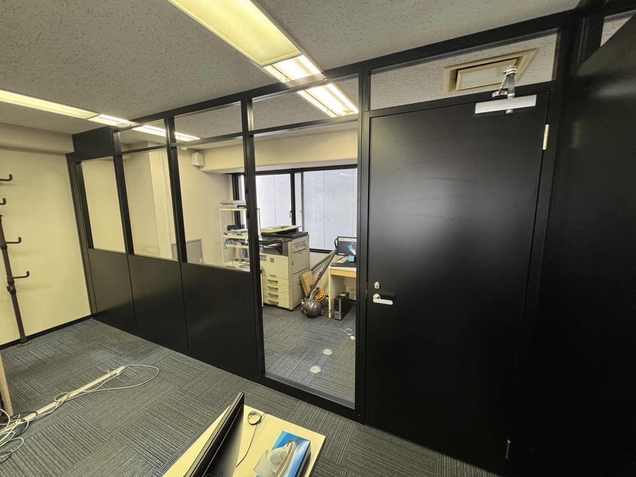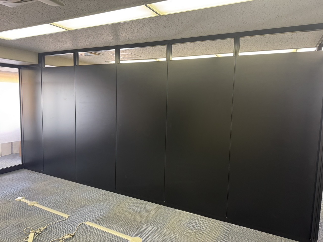 今回はブラックパーティションとガラスを組み合わせた間仕切工事を行いました。