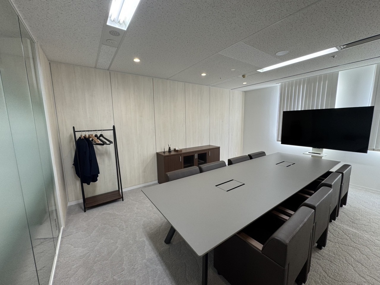 ホワイトのパーティションと比べ、よりスタイリッシュな空間となりました。