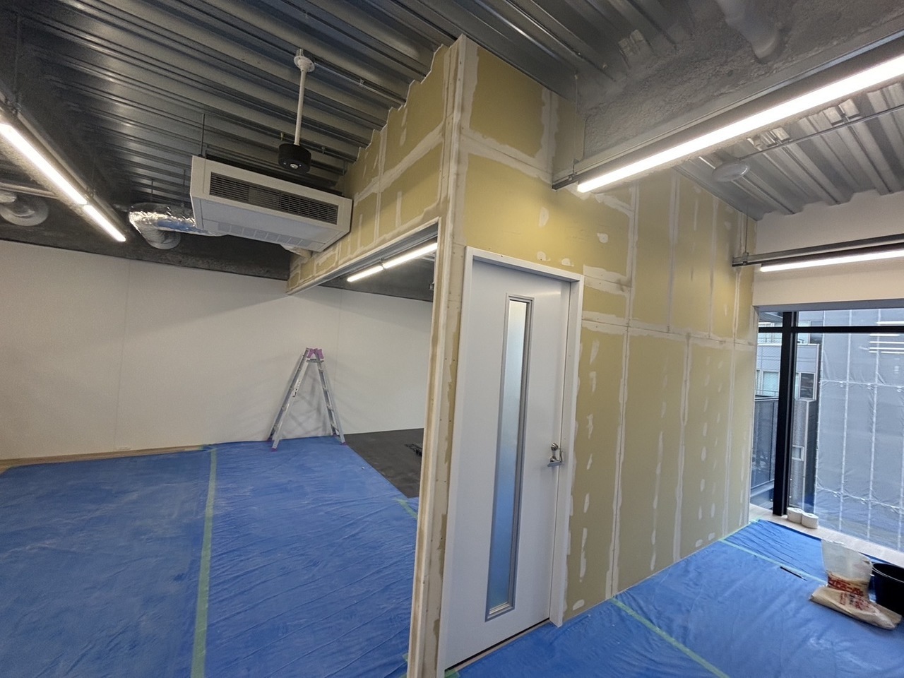 2. 新規LGS創作壁を製作して造作した扉と窓を埋め込んでいます。