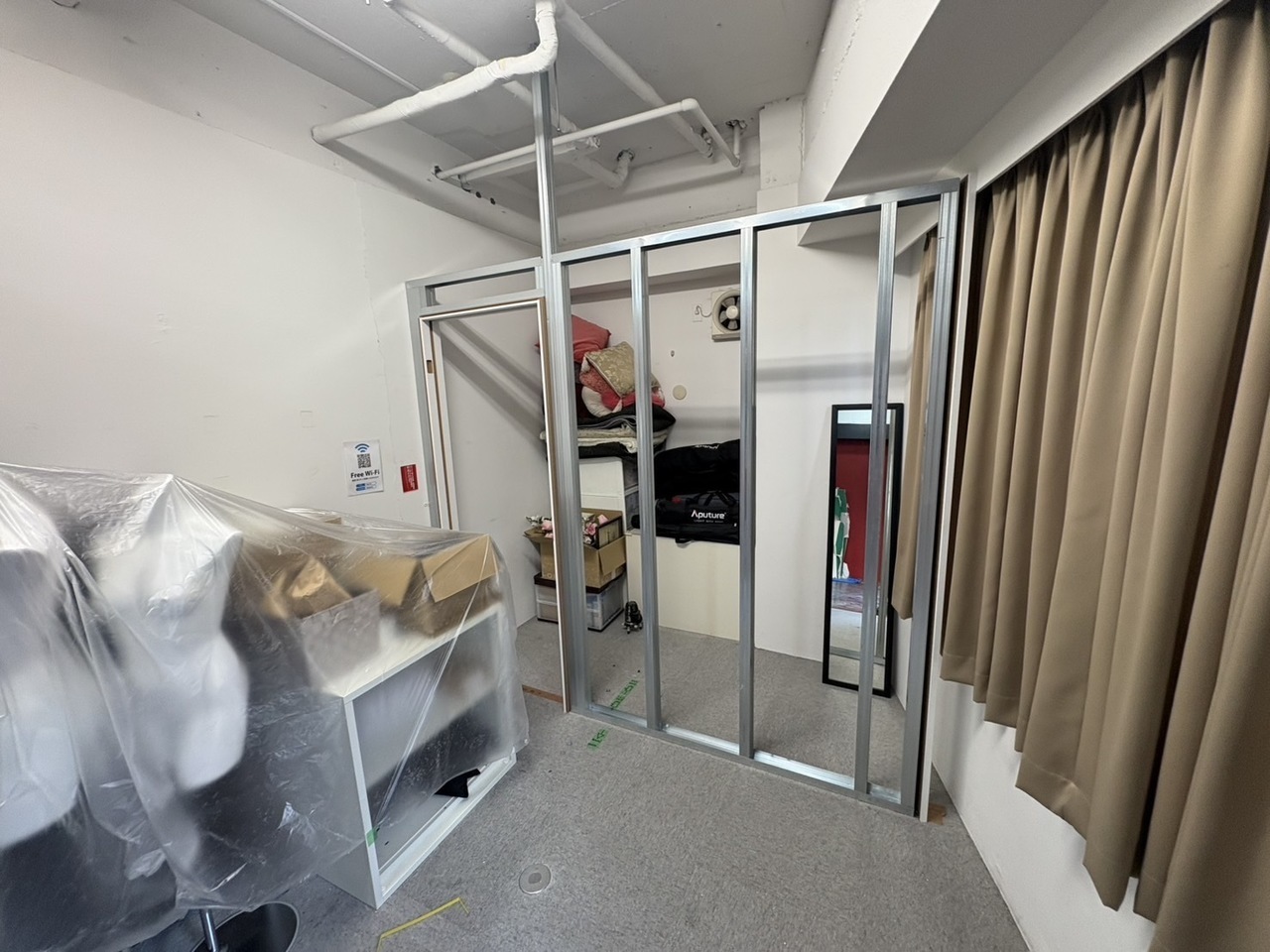 以前紹介した撮影スタジオの工事(こちらから)は0からのスタートでしたが、今回は元々ある設備を活かしながら改装を行っています。