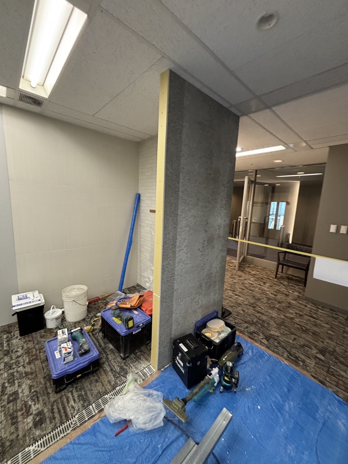 ドア交換や待合スペースの工事など様々な施工を行いました。